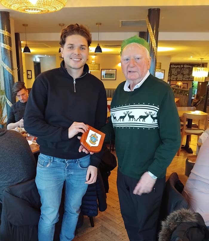 The Association Secretary, Alan Morris presents the event team prize to Josh Thomas, the Captain of the Graypen team.
