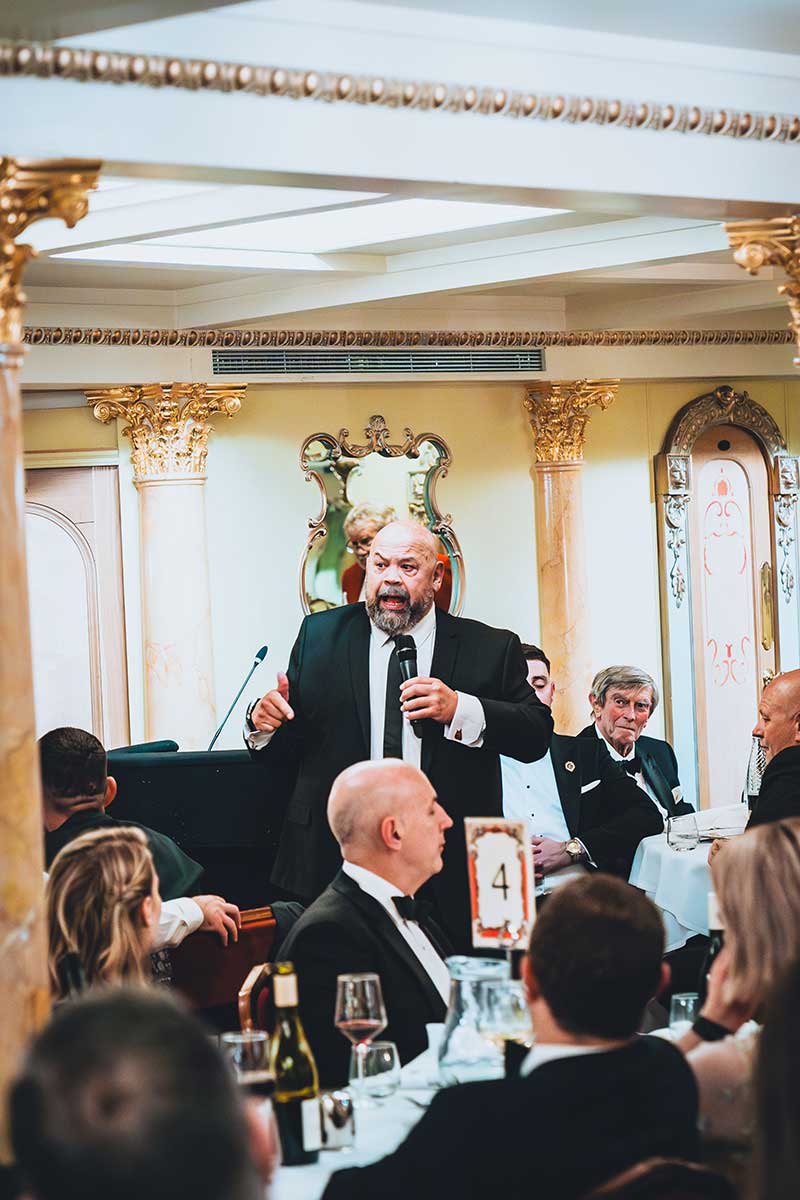 The Guest After-Dinner speaker for the evening, Gareth Chilcott in his own resolute style.